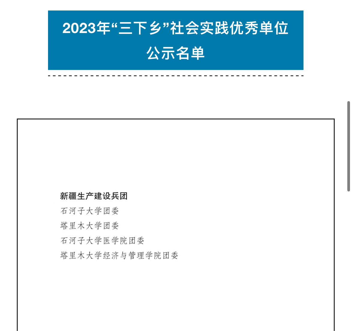 近日,共青團中央下發(fā)《2023年全國大中專學(xué)生志愿者暑期文化科技衛(wèi)生“三下鄉(xiāng)”社會實踐活動總結(jié)通報結(jié)果公示》,經(jīng)基層申報、省級團委審核推薦、組織評議等環(huán)節(jié),最終確定352個“三下鄉(xiāng)”社會實踐優(yōu)秀單位、432個“三下鄉(xiāng)”社會實踐優(yōu)秀團隊、283名“三下鄉(xiāng)”社會實踐優(yōu)秀個人、71個“三下鄉(xiāng)”社會實踐優(yōu)秀品牌項目。我校獲多項表彰: