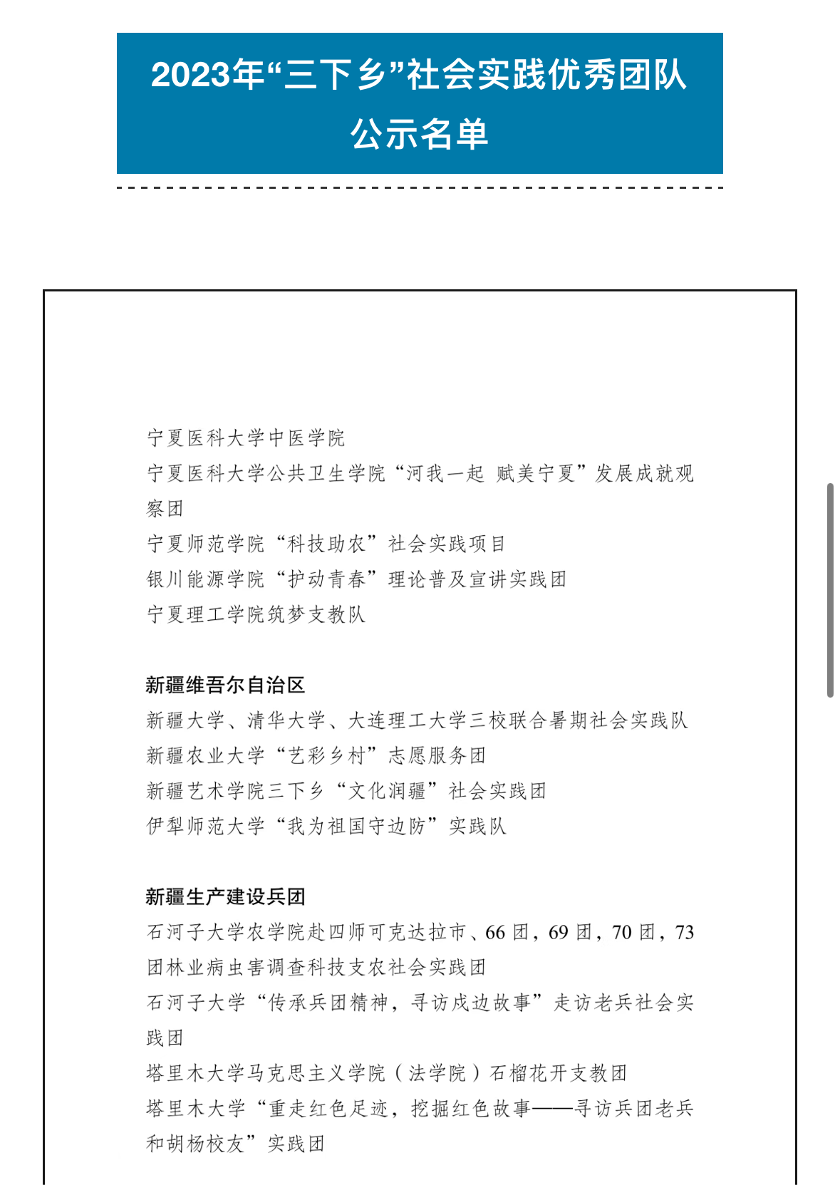 2023年“三下鄉(xiāng)”社會實踐優(yōu)秀團隊: