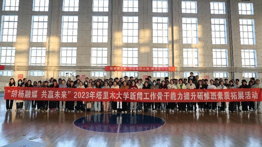 為增強團隊凝聚力和創造力,激發團隊精神,12月10日下午,胡楊·全媒體(融媒體)中心在風雨操場舉行“胡楊融媒,共贏未來”2023年塔里木大學新聞工作骨干能力提升研修班素質拓展活動?;顒佑珊鷹睢と襟w(融媒體)中心第二副主任胡新榕主持。