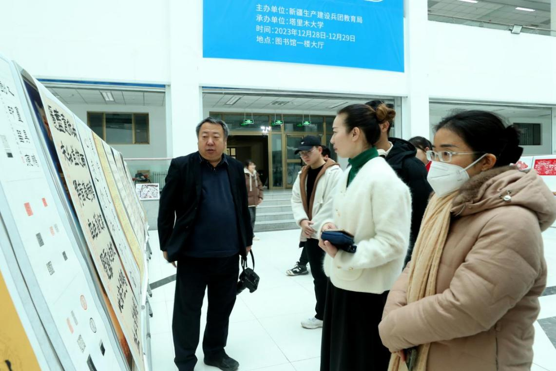12月28日上午,兵團第七屆大學生藝術展演活動藝術作品展在我校圖書館舉辦。黨委宣傳部部長陳蕾,石河子大學文聯副主席(專職)王怡平,兩校相關教師代表及我校學生代表參加。