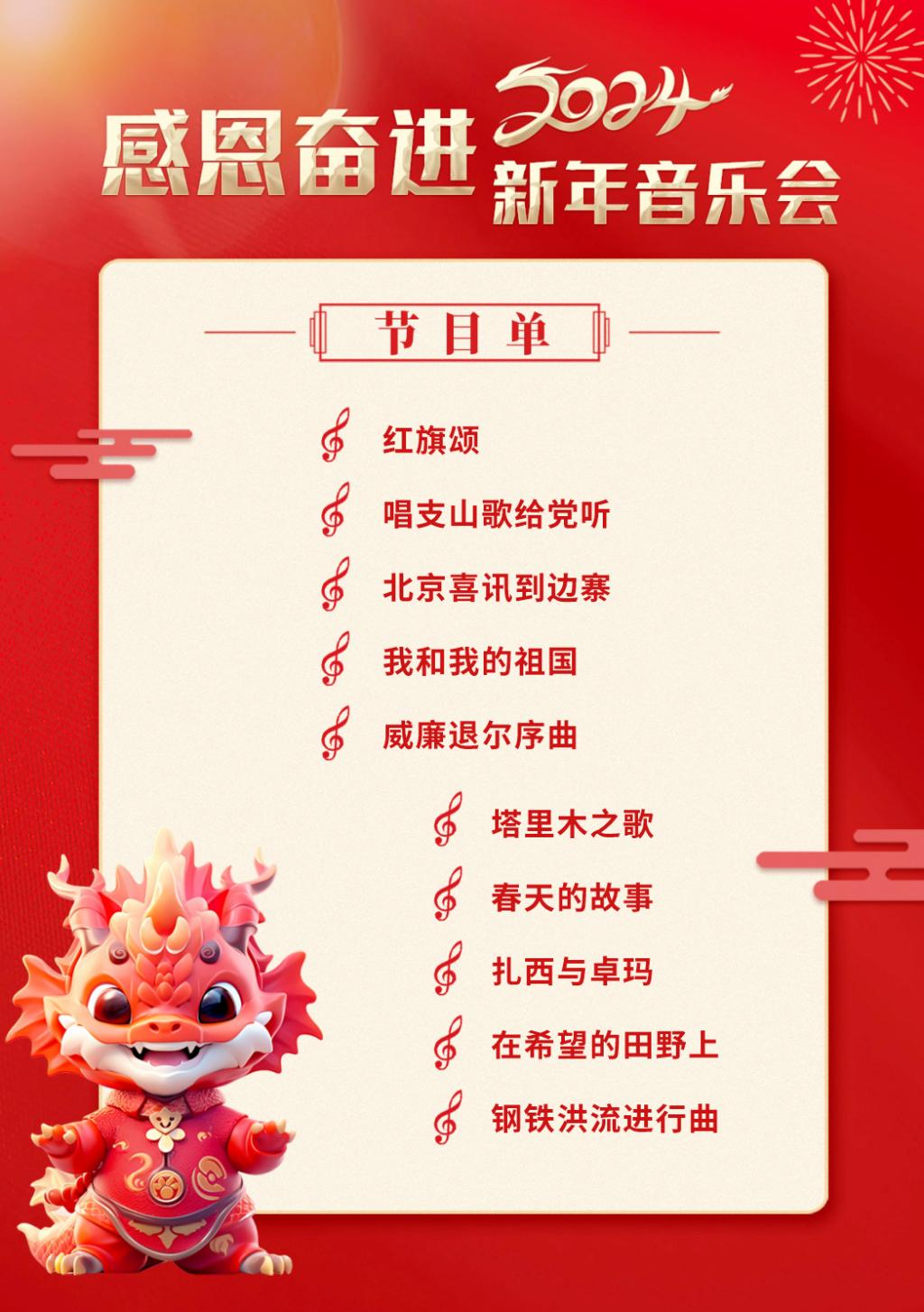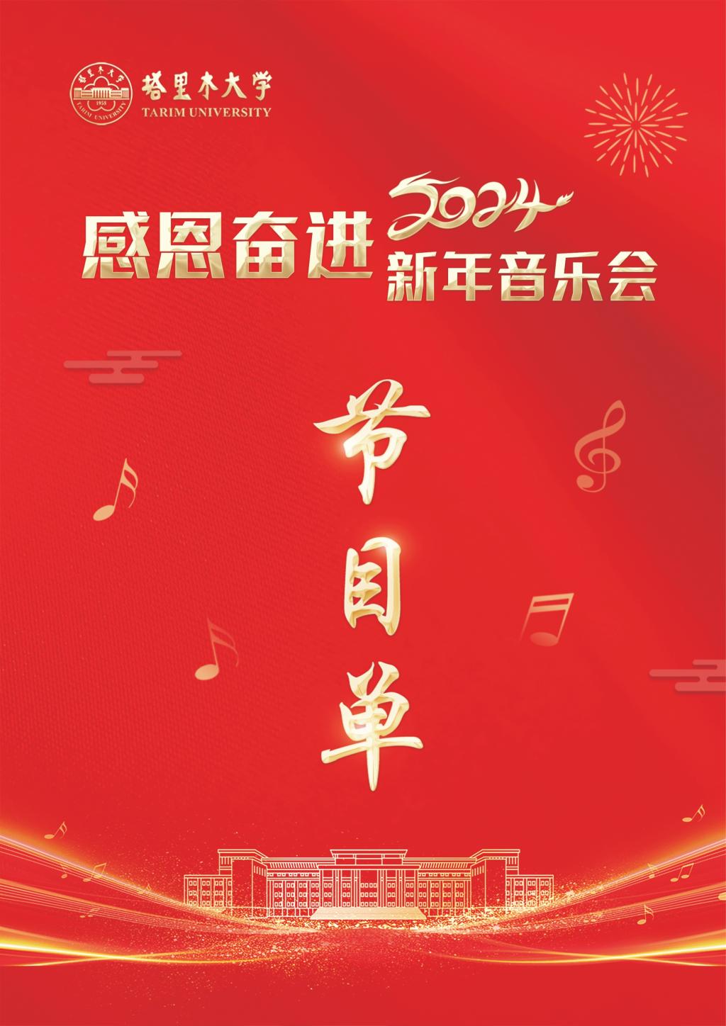 歲月不居,時節如流。2023年即將圓滿收官,2024年如約揚帆起航。在新年到來之際,塔里木大學“感恩奮進”2024年新年音樂會將于2023年12月31日21:00在文科樓B座報告廳隆重上演。屆時,音樂會將通過兵團文化云、團炬客戶端,塔里木大學抖音號、視頻號、微博號向全網同步直播,全校師生、各界校友可通過平臺同步觀看,與母校一同感恩奮進跨新年。