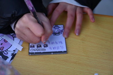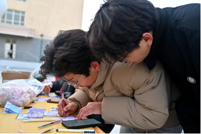 胡楊學子們走近活動現場,紛紛拿起手中的筆,在精美的賀卡上寫下新年心愿。