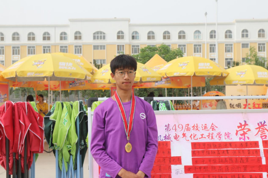 男子10000米冠軍、機械電氣化工程學院機械電子工程2020級1班龐昊昊說:“大一的時候我就參加了校運會,當時成績還不理想,但服輸、不氣餒的性格,讓我在心中樹立了奪冠的目標。后續的校運會我都有進行充分的準備,終于在大三奪得了屬于自己的第一塊金牌。今年是我參加比賽的第四個年頭,5000米和10000米都是冠軍讓我喜出望外,發揮穩定、日積月累,才能有今天的收獲。”
