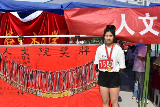 女子800米冠軍、人文學院漢語言2021級布威阿伊謝·阿尤普說:“每一次起跑,都是對自我的挑戰;每一次沖刺,都是對夢想的致敬。雖然這次沒能刷新個人成績,但站在領獎臺上,手中沉甸甸的金牌是對我最大的肯定。那些汗流浹背的日子,那些挑戰極限的瞬間,都成就了今天堅韌不拔的自己。”