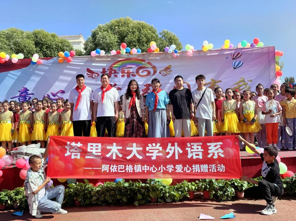 塔里木大學外語系-阿依巴格鎮中心小學愛心捐贈活動在兩個月的籌備中如期舉行。阿瓦提縣教科局領導、塔里木大學外語系教師、阿依巴格鎮中心小學師生們戴上紅領巾,一起度過這難忘的六一兒童節。