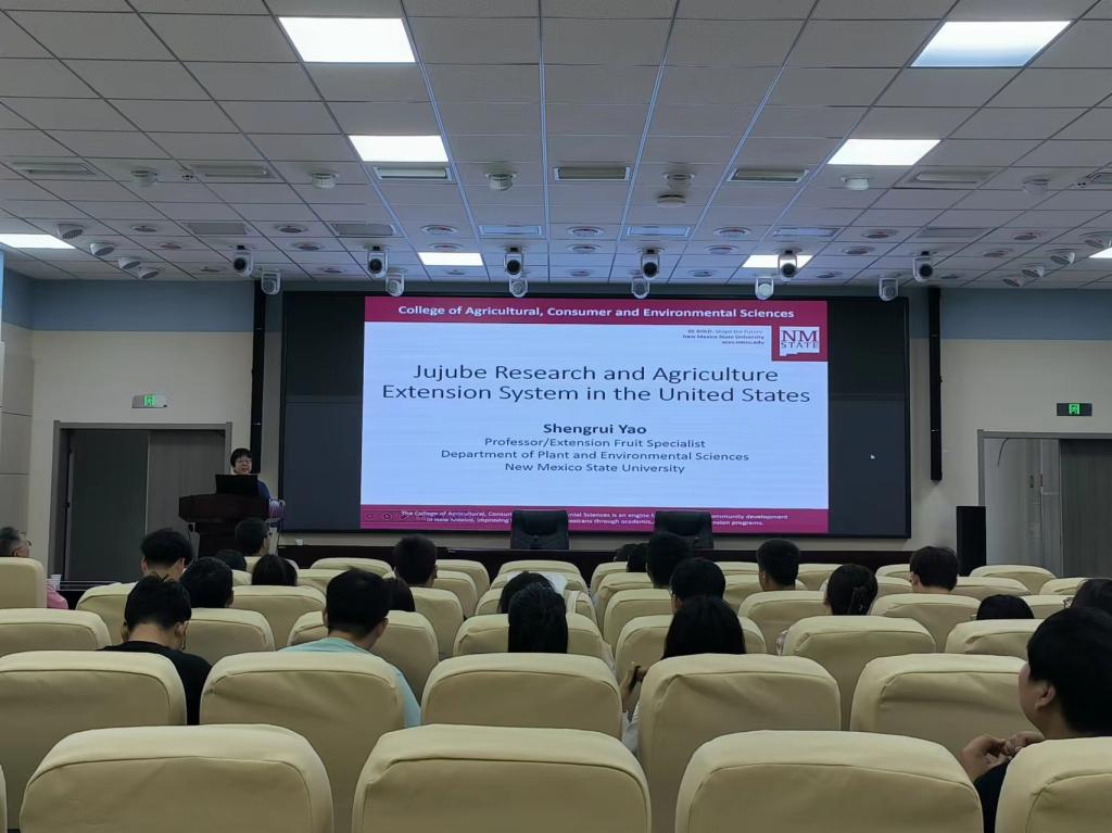 近日,美國新墨西哥州立大學植物和環境系姚勝蕊教授受邀為我校師生作學術報告。報告在南疆現代農業先進技術研究院舉行。園藝與林學學院領導及師生代表參加。