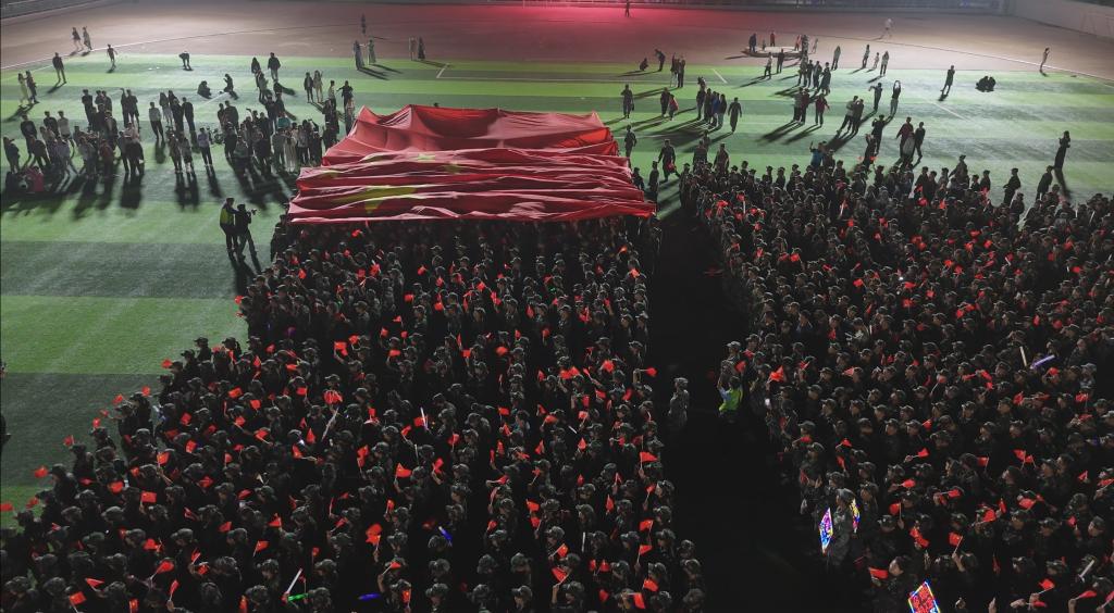 萬名胡楊學子高唱《祖國不會忘記》《強軍戰歌》等紅色歌曲,巨幅國旗的徐徐展開,把整場活動再次推向高潮。