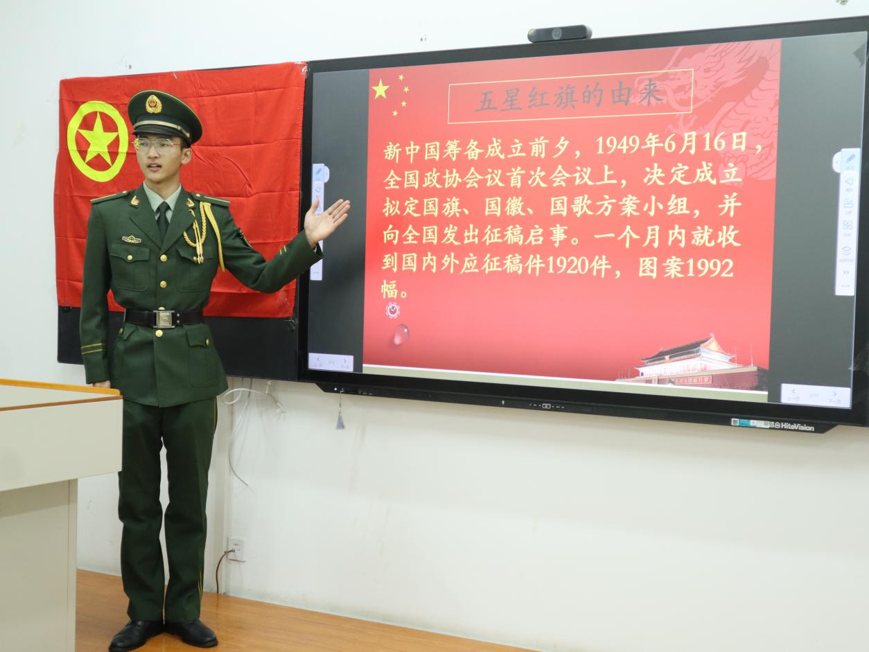 分享會上,學院還邀請了校國旗護衛隊成員全面講解《中華人民共和國國旗法》,加深了大家對愛旗護旗的責任感和榮譽感。師生們還共同朗誦了《國旗頌》,用詩歌的形式表達對祖國的熱愛與祝福。