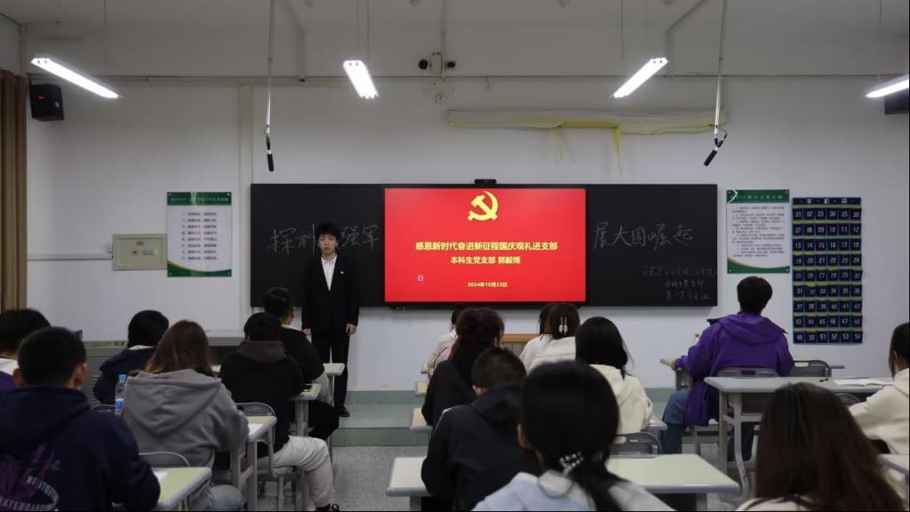 10月23日,郭毅博走進學院本科生黨支部分享觀禮感言