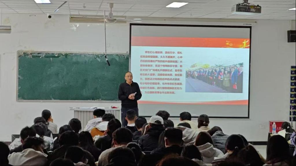 觀禮“銀齡”教師曾樂元走進班級分享了觀禮心得。他講到,靚麗的中國紅,是無數革命先烈用生命和鮮血換來的。當看到冉冉升起的五星紅旗高高飄揚在天安門廣場上空時,我的內心翻涌起無數的回憶和緬懷,致敬仁人志士為祖國奉獻一切的忠貞不屈,致敬兵團人艱苦奮斗、屯墾戍邊的不懈奮斗,致敬塔大人自強不息、教育戍邊的初心不改。我要牢記囑托、感恩奮進,不忘立德樹人初心,堅守教書育人使命,繼續在平凡的崗位上大力弘揚教育家精神,為黨的教育事業盡綿薄之力,為推進中國式現代化貢獻自己的“銀發力量”。