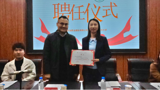 雷長柱為鮑亞莉頒發聘書,聘任鮑亞莉為校外創新創業指導教師。