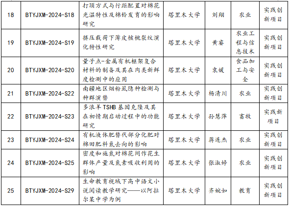 12月25日,兵團教育局公布了2024年兵團研究生教育創新計劃項目立項結果。我校33個項目獲批立項,其中,研究生教育教學改革研究項目立項8項,研究生科研創新項目立項25項。