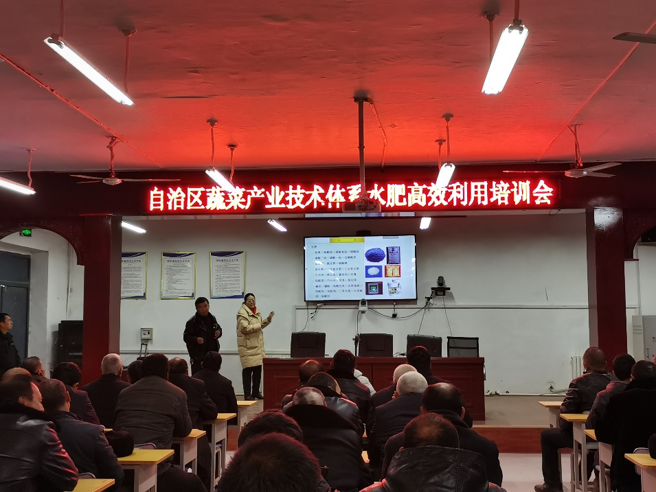 團隊成員組織開展了“2025 年和田地區設施農業越冬生產技術培訓會”,管瑤教授結合當地設施農業實際,以通俗易懂的方式向參加培訓會的農業技術骨干與種植戶講解了越冬期間精準灌溉與科學施肥技術。