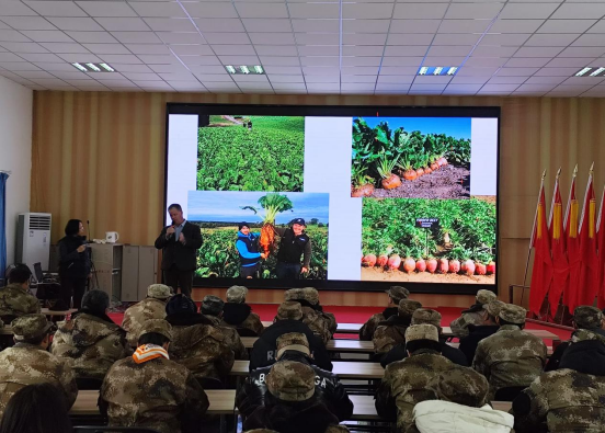 團隊成員組織開展了“飼用甜菜種植技術培訓會”,邀請新西蘭林肯大學GIBBS STEVEN JAMES教授詳細介紹了新西蘭畜牧業的發展和飼用甜菜的種植情況。培訓結束后,24團7連職工說:“通過今天的培訓,讓我對牛、羊定期免疫和飼料營養方面有了更深入的學習?!?/p>