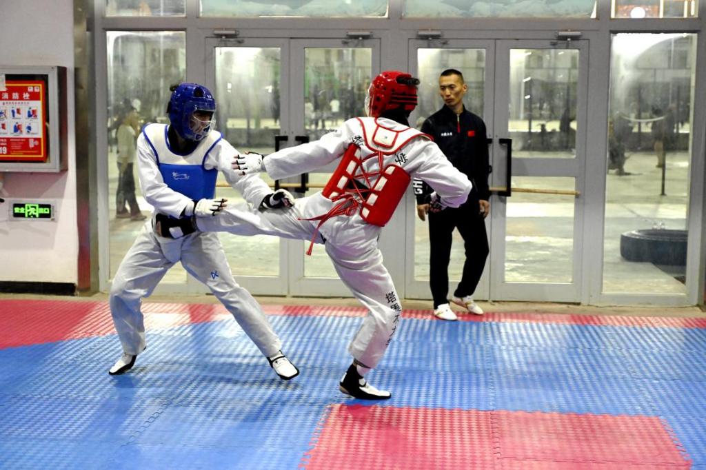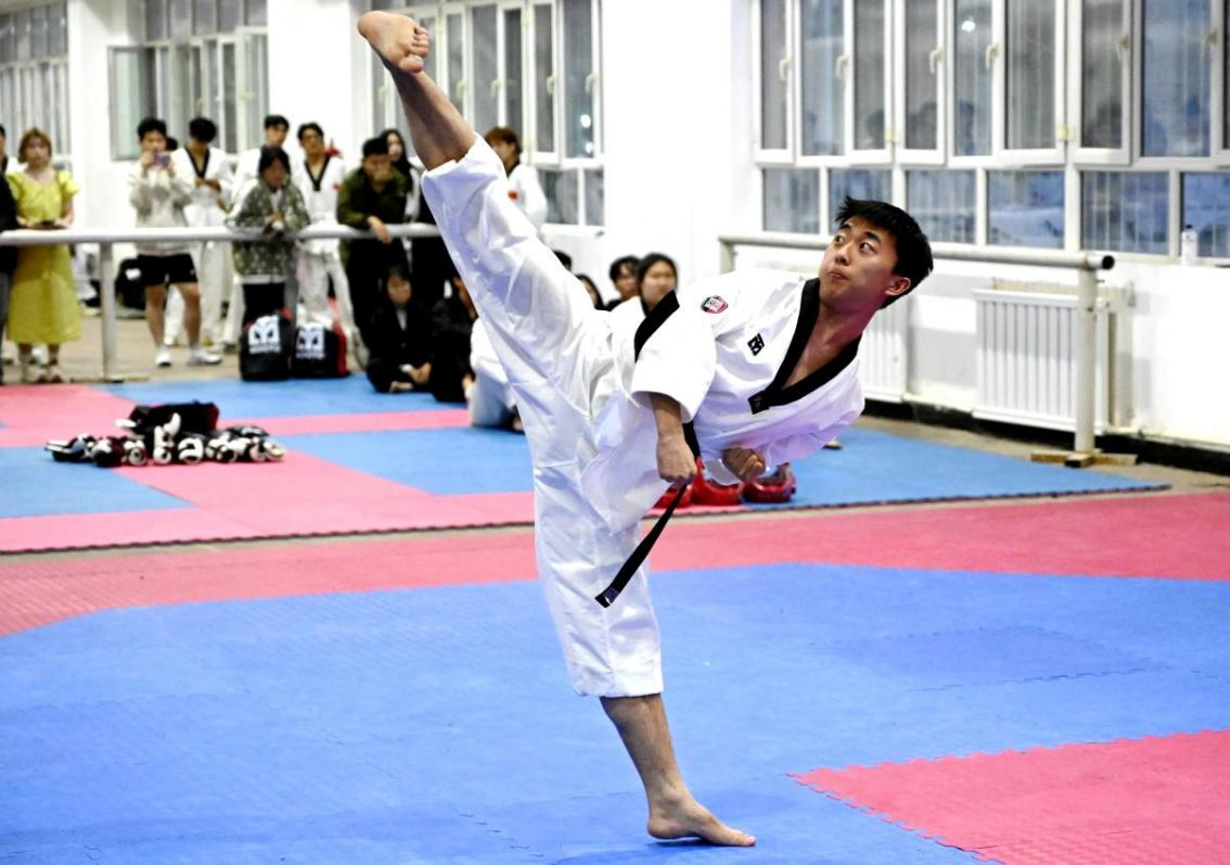 比賽現場,品勢項目時,選手們動作連貫,招式豐富,優雅與力量交融,盡顯跆拳道精髓。競技項目時,選手們剛勁的沖拳、迅捷的踢擊,充分展現出跆拳道的獨特魅力,而逐出勝負后鞠躬致敬,則彰顯了這項運動“以禮始,以禮終”的文化內核。賽場外,橫踢、后旋踢等高難度動作命中瞬間,觀眾熱情被即刻點燃,歡呼聲、吶喊聲交織,比賽現場氣氛熱烈。