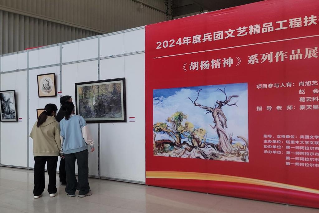 本次展覽由塔里木大學(xué)文聯(lián)主辦,第一師阿拉爾市美術(shù)家協(xié)會(huì)、第一師阿拉爾市新時(shí)代文明實(shí)踐中心承辦,第一師阿拉爾市文聯(lián),阿拉爾市文化館協(xié)辦。展覽以“胡楊精神”為主題,共展出胡楊風(fēng)景作品56幅,旨在通過這些文藝作品展現(xiàn)胡楊的頑強(qiáng)與壯美。(文/肖旭藝 攝/趙澳)