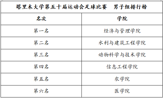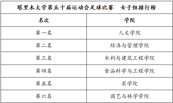4月13日,塔里木大學第五十屆運動會足球比賽在西區田徑場圓滿結束。最終,經濟與管理學院男子足球隊、人文學院女子足球隊分別獲得男足、女足冠軍。