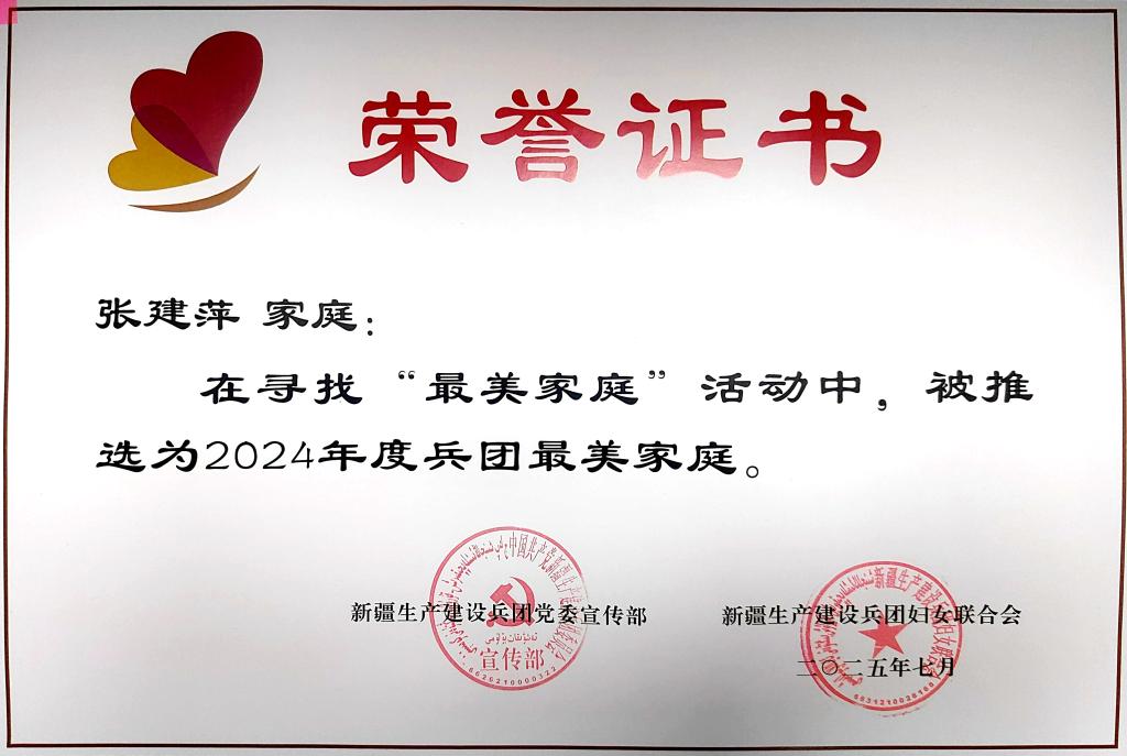 近日,兵團婦聯公布了2024年度兵團“最美家庭”,共有50戶家庭榮獲兵團“最美家庭”,我校生命科學與技術學院張建萍家庭獲此殊榮。