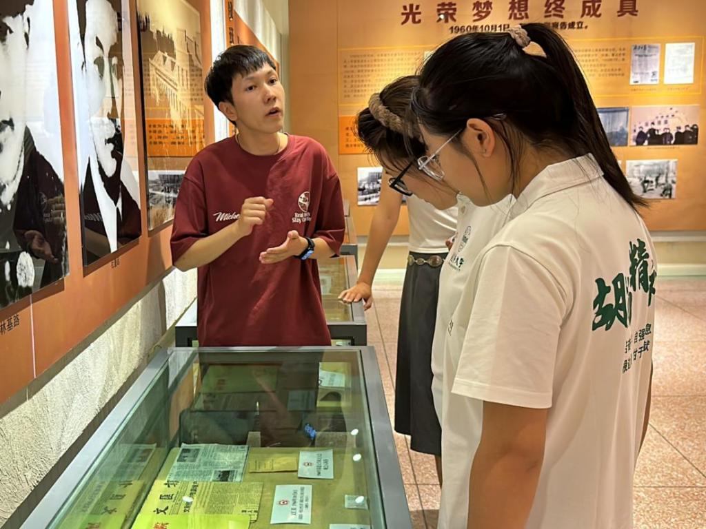 7月11日,團隊成員步入新疆大學校史館,一篇篇圖文介紹,一件件陳列物品,展現了學校從艱苦創業到蓬勃發展的辦學歷程。