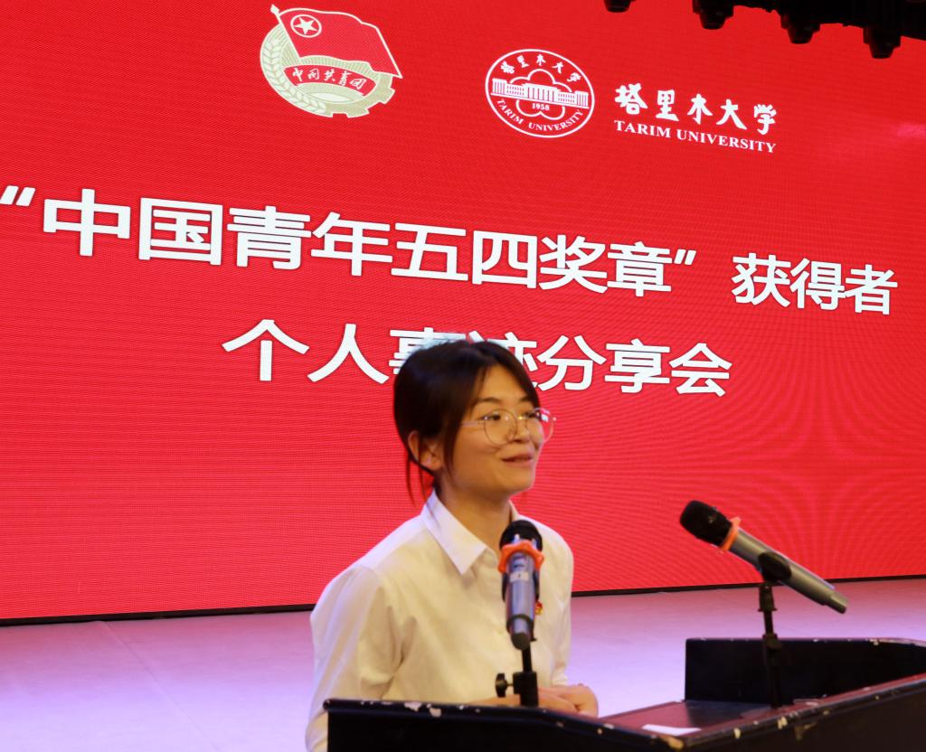 分享會上,第三師圖木舒克市團委副書記、托運牧場社會事務副主任、第11屆中國青年志愿者優秀個人獎、第22屆“中國青年五四獎章”獲得者邵書琴,塔里木大學植物科學學院教授、自治區青年聯合會委員、中國園藝學會會員、新疆園藝學會理事、兵團科技進步三等獎、兵團優秀科技特派員、第8屆“兵團青年五四獎章”獲得者張銳,阿拉爾市托喀依鄉二隊黨支部書記、第8屆“兵團青年五四獎章”獲得者庫爾班·依米尼亞孜,結合個人經歷,講述了各自的青春故事,詮釋了新時代青年的使命與擔當,鼓勵同學們在擔當中歷練,在盡責中成長。
