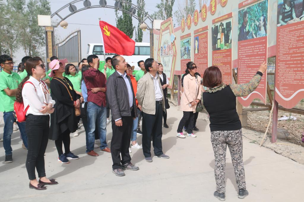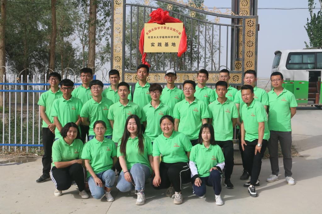 4月17日下午,植物科學學院黨委書記蔣學瑋、副院長周正立帶領三辦一室全體人員和團委學生會干部,一起到全國人大代表尤良英的“蒲公英樂園”參觀學習,并舉行“全國農科學子聯合實踐行動塔里木大學植物科學學院實踐基地”掛牌儀式。