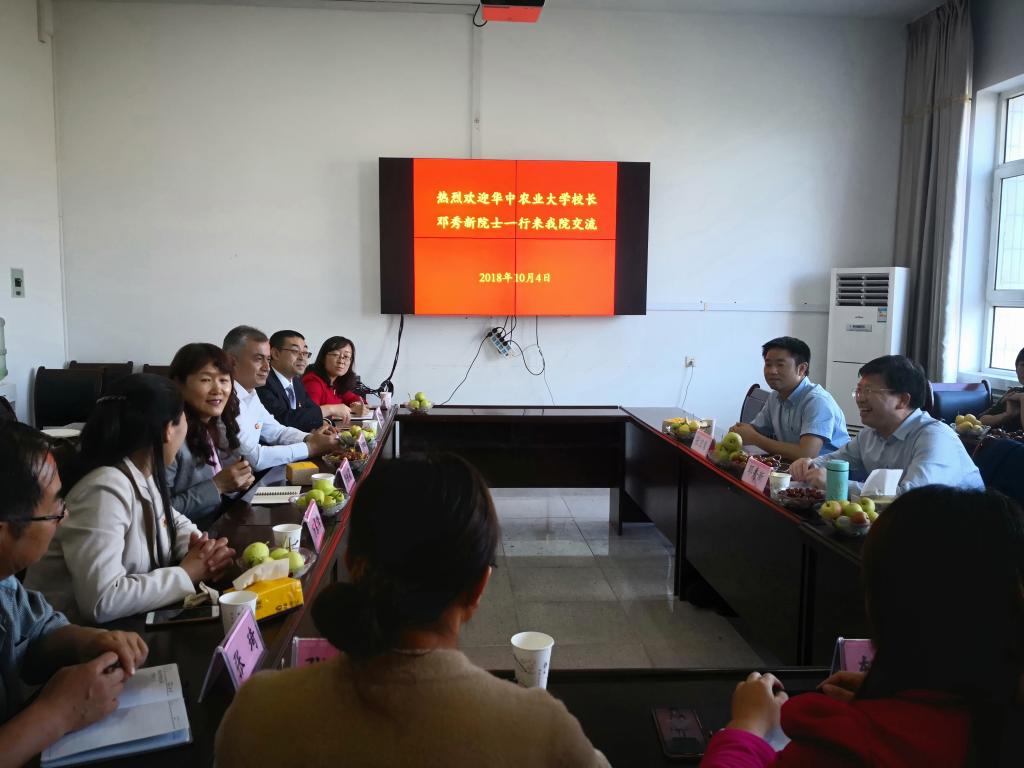 10月4日下午,華中農業大學鄧秀新院士和園藝林學學院張宏榮書記應邀到植物科學學院與園藝學科教師開展座談交流,塔里木大學副校長張利莉以及植科院領導參加座談交流。
