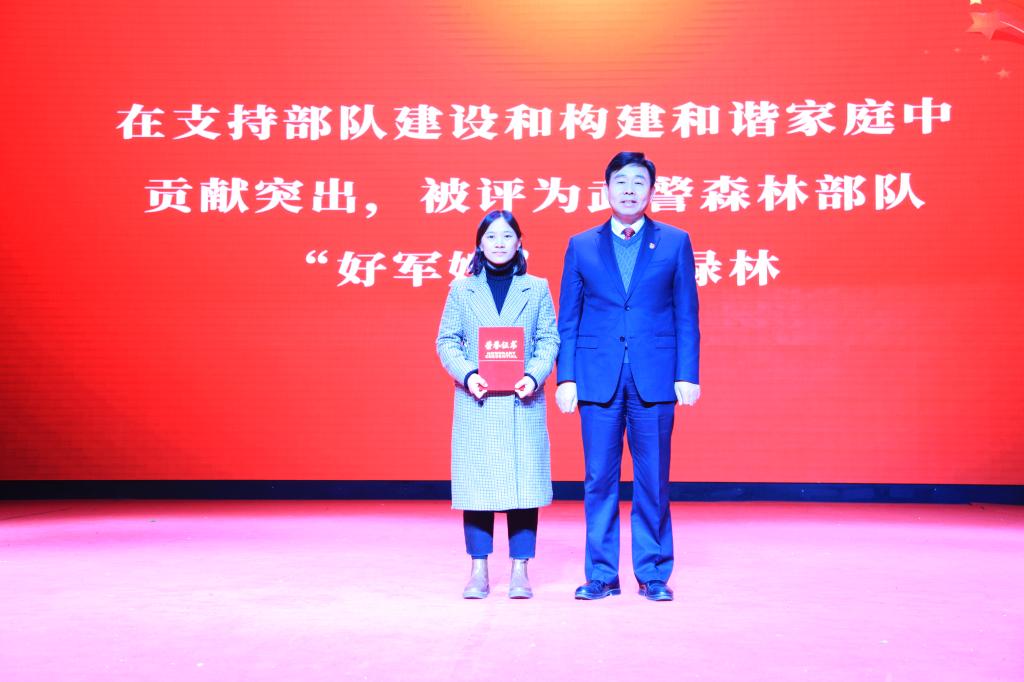 2018年,12月17日,在人文學院第二屆“筑夢胡楊”頒獎晚會上,人文院黨委書記為支持部隊建設和構建和諧家庭中貢獻突出的“好軍嫂”頒獎。