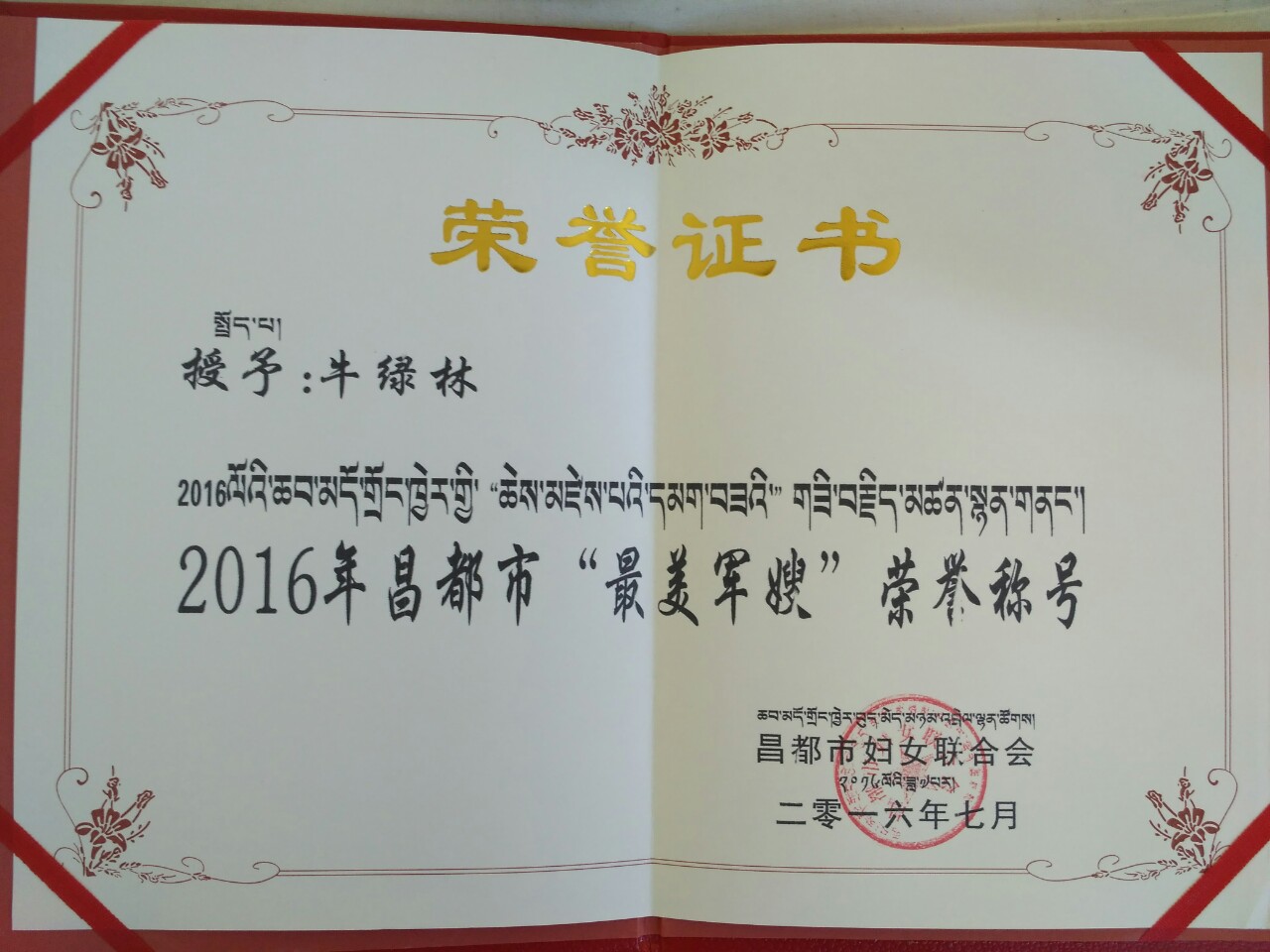 牛綠林,我校人文學院教師,中共黨員,畢業于四川大學,2016年來我校工作至今。于2012年同原武警西藏森林總隊昌都支隊副營職干部孫武同志結婚。今年9月,牛綠林在支持部隊建設和構建和諧家庭中貢獻突出,被原武警森林指揮部表彰為森林部隊“好軍嫂”。自兩人戀愛、結婚以來,長年兩地分居,聚少離多。牛綠林用柔弱的肩膀撐起一個溫暖的軍人之家。這次獲獎是對她長期默默無聞支持丈夫工作,支持國防事業的充分肯定。