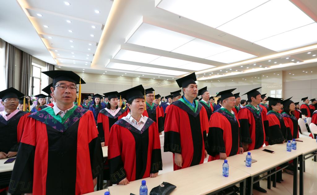 黨委副書記、校長張傳輝,黨委常委、副校長盧光志,副校長張利莉,黨委常委、副校長曲義勇,以及相關部門、各院領導出席儀式。2019屆全體碩士研究生及導師參加儀式。