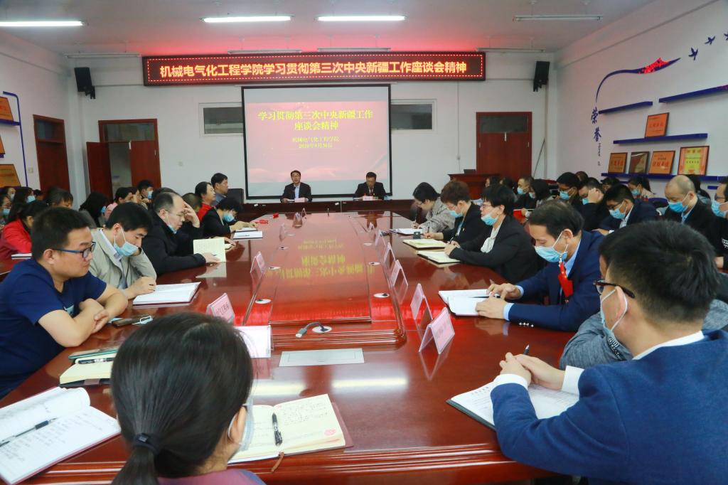 9月30日下午,機械電氣化工程學院組織學院師生學習總書記在第三次中央新疆工作座談會上重要講話精神。