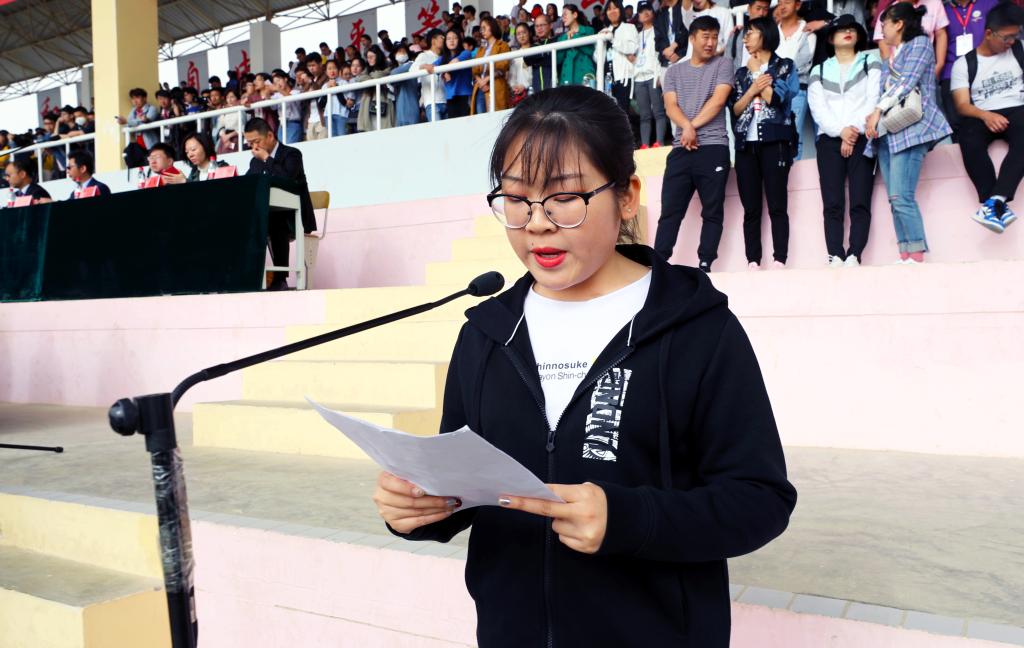 運動員代表生科院康新玉同學宣誓表示,要以飽滿的熱情積極投入運動會,嚴格遵守賽事各項安排,遵守比賽規則和賽場紀律,服從裁判,尊重對手,團隊協作,頑強拼搏,賽出風格賽出水平。