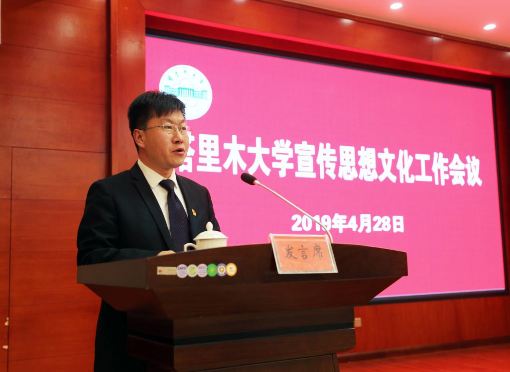 4月28日下午,塔里木大學2019年宣傳思想文化工作會議召開。黨委書記趙光輝,黨委常委、副校長曲義勇出席會議。各學院黨政主要負責人、黨委副書記,機關黨委部門正副職干部、機關行政部門正職干部,全體輔導員、思政系教師、團學干部代表參加會議。會議由曲義勇主持,在南疆雙語培訓中心二樓報告廳召開。