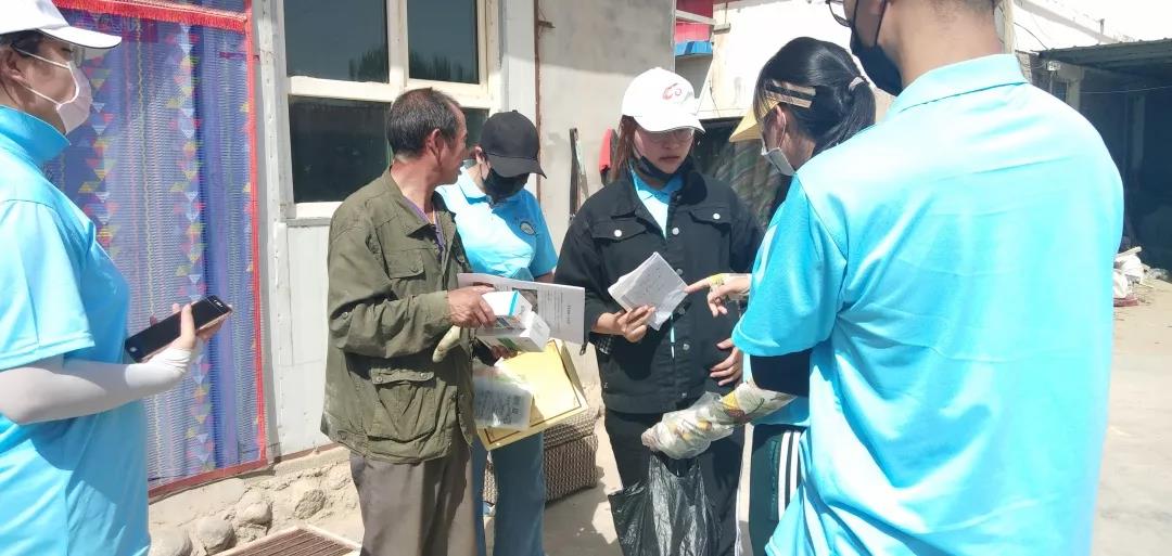 調查隊在工作隊的陪同下向養羊戶們發放宣傳單并且講解了羊剛買來時應該打的疫苗即小反芻獸疫和口蹄疫疫苗,講解這邊常患病,如危害比較大的病如羊痘、布病、包蟲病等病的的預防及治療問題。