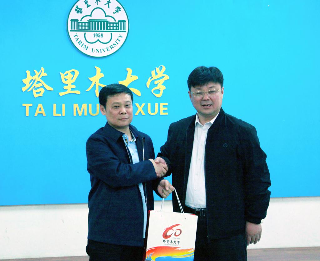 巫文武談了來到學校的深切感受和體會,對塔大60年來傳承紅色基因,用胡楊精神育人、為興疆固邊服務取得的豐碩辦學成果表示贊賞和敬佩。他介紹了新疆師范大學發展情況,希望兩校今后全面貫徹黨的教育方針,落實立德樹人根本任務,進一步加強在人才培養、科學研究、社會服務方面交流合作,大力培養愛國愛疆、擔當奉獻的社會主義建設者和接班人,攜手為實現新疆社會穩定和長治久安作出新的更大貢獻。