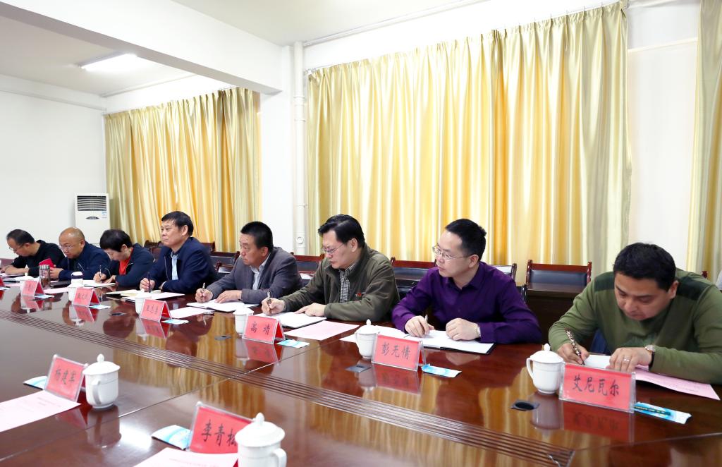 4月14日,新疆師范大學黨委書記巫文武,帶領該校黨委常委、紀委書記王志勇,黨委常委、副校長孫秀玲,黨委常委、宣傳部部長高靖等來校考察訪問,受到我校黨委副書記、校長張傳輝,黨委副書記、紀委書記單洪山,黨委常委、副校長曲義勇等領導熱情接待。雙方在行政樓317室舉行座談會。