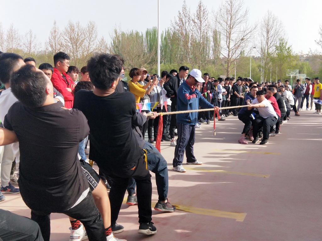 萬眾一心,其利斷金。拔河比賽讓大家眾志成城,凝心聚力,更是宣揚了團結(jié)拼搏、樂觀向上的體育精神。不管是勝或敗,拔河比賽給場上運動員、場下啦啦隊帶來了運動的快樂。(田雨)