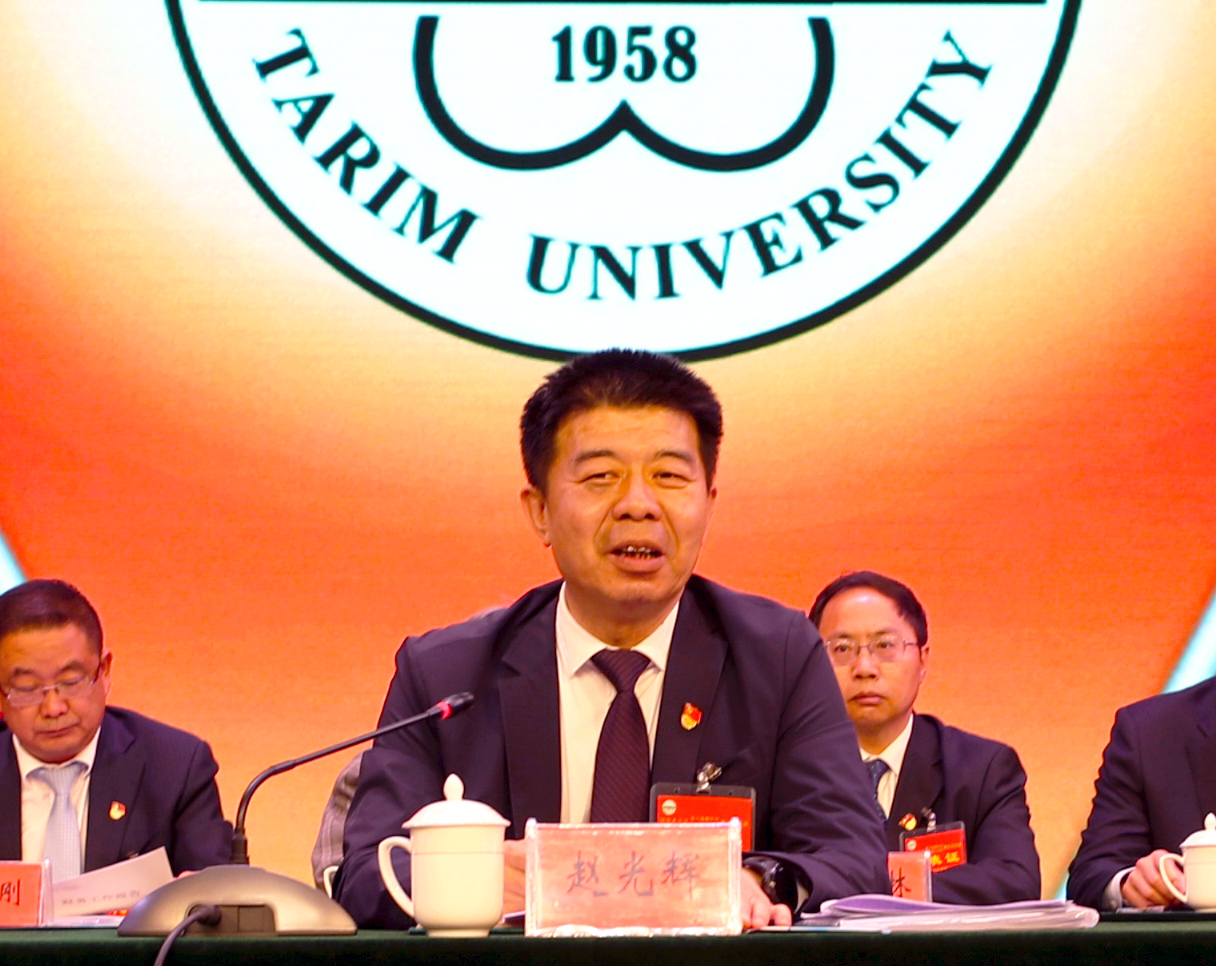 趙光輝講話指出,2018年,塔里木大學(xué)無論是黨代會的勝利召開、審核評估工作的順利完成、校慶的成功舉辦,還是人才培養(yǎng)、學(xué)科建設(shè)、科技創(chuàng)新和社會服務(wù)等各方面工作都取得了比較好的成績。特別是在艱巨的工作任務(wù)和諸多困難面前,大家都經(jīng)受住了考驗,表現(xiàn)出我校廣大黨員干部和師生員工良好的精神風貌。同時,我們的工作得到了黨中央和自治區(qū)黨委、兵團黨委的充分肯定。可以說,2018年學(xué)校收獲滿滿,成績可圈可點。當然,這些收獲既是黨中央和自治區(qū)黨委、兵團黨委關(guān)心支持、社會各界人士熱情幫助的結(jié)果,更是我校廣大師生員工共同努力的結(jié)果。