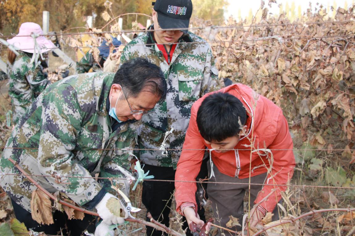 10月30日至11月1日,植物科學學院張琦、金強兩位教授,帶領林學21班學生,前往13團的農業合作社,開展為期三天的《經濟林栽培學》課程實習,進行葡萄冬季修剪。