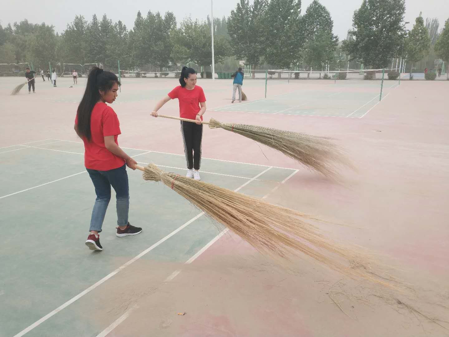 上午10:30,后勤管理處全體干部職工與交友學生一起來到東區排球場、籃球場,開展“凈化校園,美化校園”活動,打掃環境衛生。大家熱火朝天,體驗了勞動的光榮,也美化了校園環境。