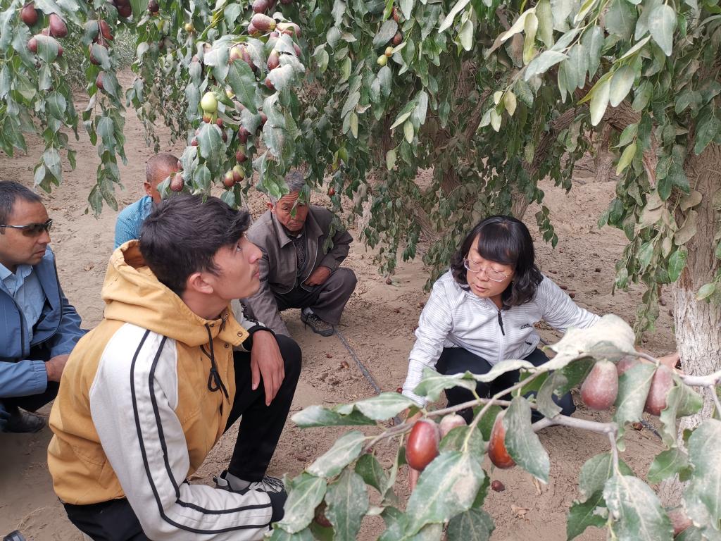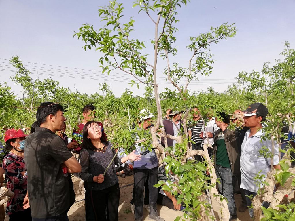 每年的果樹管理關鍵期,她都會利用周末、節假日和寒暑假,帶領團隊奔赴南疆貧困團場、鄉鎮,在田間地頭給農民培訓果樹種植技術,為果農開“農技處方”,并不斷創新科技服務新模式。