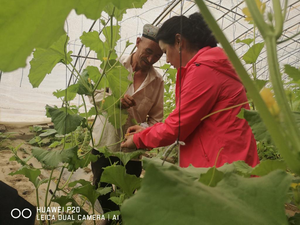 團隊與貧困戶進行交流、訪談,針對設施生產環境管理問題、黃瓜、甜瓜、西葫蘆等蔬菜的水肥管理、植株調整和病蟲害防治進行技術指導,為當地群眾增產增收、脫貧致富奠定了基礎。