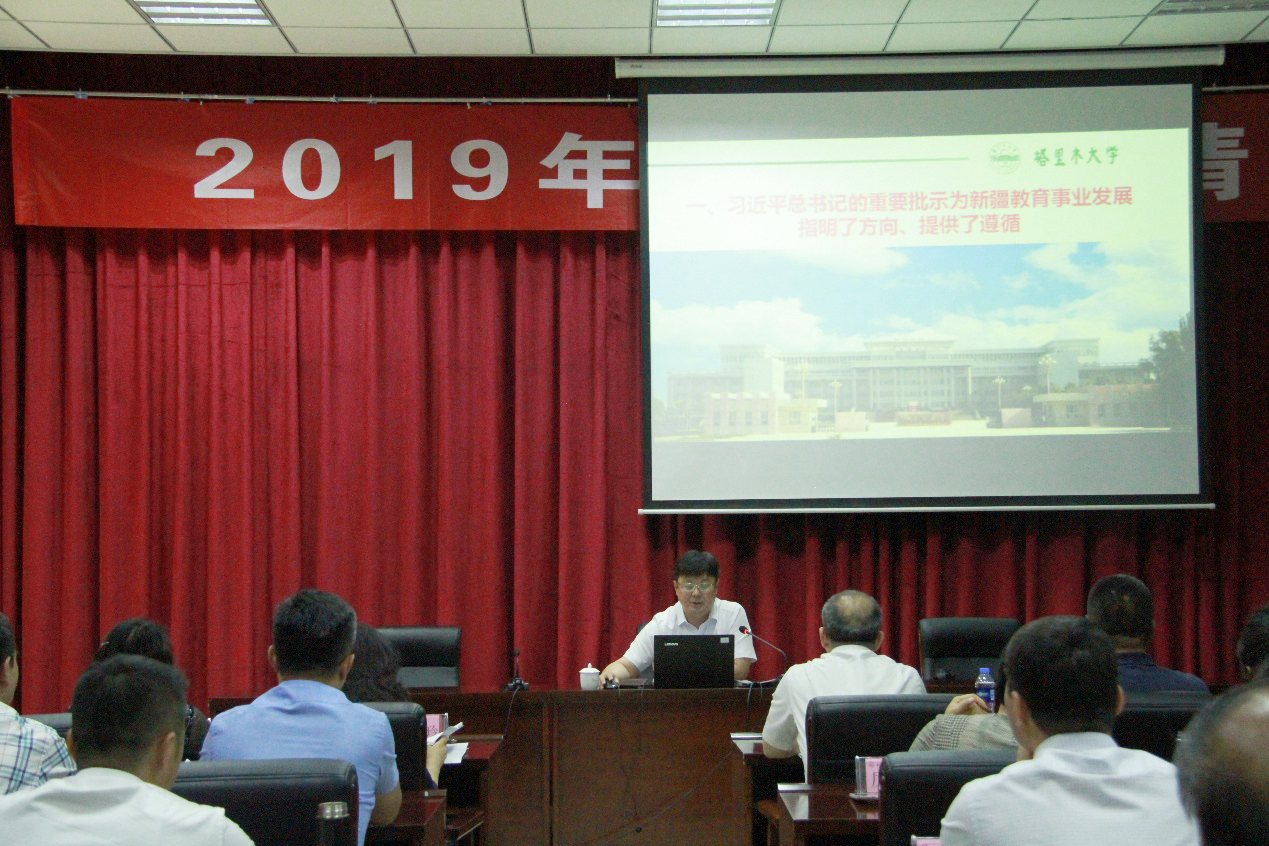 2019年6月16日下午,自治區2019年專家國情研修培訓班(第二期)第三講在新疆大學校本部行政樓一樓會議室開講,張傳輝校長為學員作了題為《用胡楊精神育人 為興疆固邊服務》的專題講座。