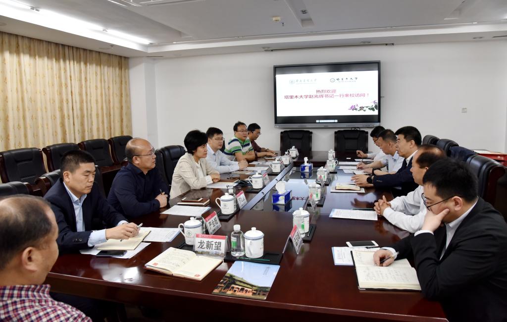 劉雅紅代表華南農(nóng)業(yè)大學(xué)黨委對趙光輝、盧光志一行到訪表示熱烈歡迎,介紹了華南農(nóng)業(yè)大學(xué)近年來的發(fā)展情況,重點(diǎn)介紹了華南農(nóng)業(yè)大學(xué)高水平大學(xué)建設(shè)情況加強(qiáng)“雙一流”建設(shè)情況,回顧了兩校交流合作情況。她強(qiáng)調(diào),華南農(nóng)業(yè)大學(xué)愿意為祖國邊疆的鄉(xiāng)村振興、脫貧攻堅(jiān),特別是為塔大未來建設(shè)發(fā)展提供更大支持幫助。