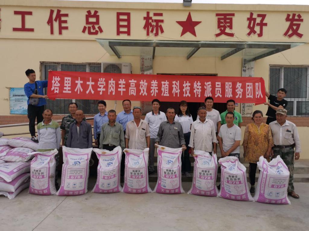 6月3日,肉羊高效養殖科技特派員服務團隊,來到225團民航新村,與我校“訪惠聚”工作隊一道向養殖戶捐贈了8噸羊全價顆粒飼料。走訪了10余戶肉羊養殖戶,了解養殖情況,并進行養殖技術培訓。團隊選擇了3個養殖戶作為試點,計劃購買4只種公羊,進行肉羊品種改良,提高繁殖效率和羊肉品質。