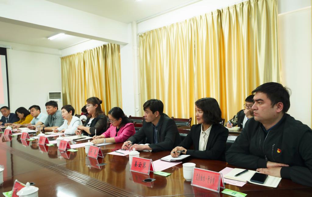 新疆師范大學、塔里木大學有關部門、學院負責人參加座談。會議在行政樓317室舉行。會前,大家一起觀看了塔里木大學60年校慶宣傳片。