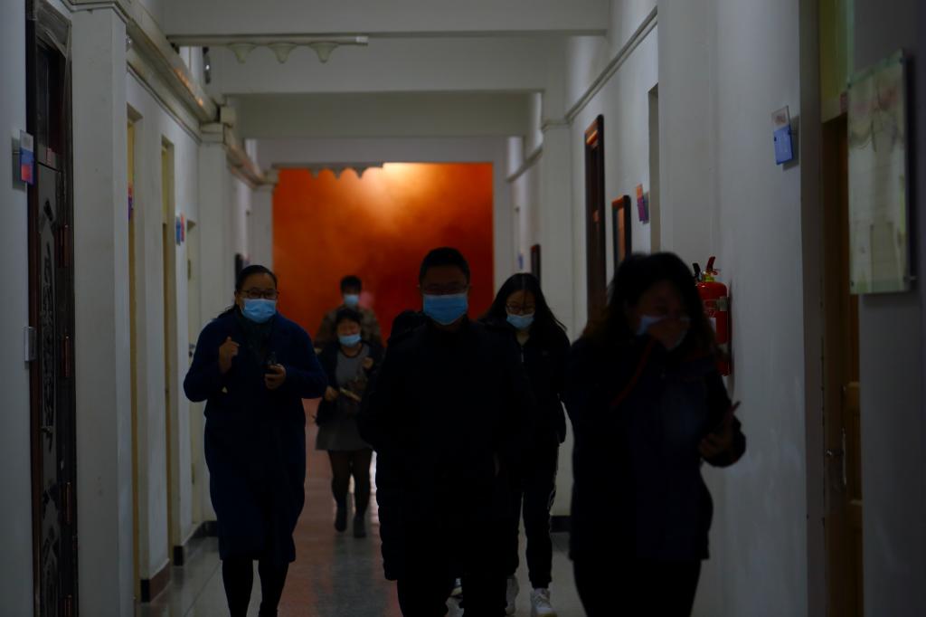 此次消防演練主要以行政樓二樓垃圾桶突然起火,同時伴有大量煙霧彌漫整個樓道為演練內容。在疏散現場,機關領導干部和工作人員用口罩、濕毛巾、袖口等物捂住口鼻,彎腰、低姿、有序從各辦公室迅速跑出來,繞過著火點,到達應急演練集合點。