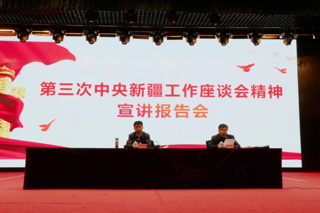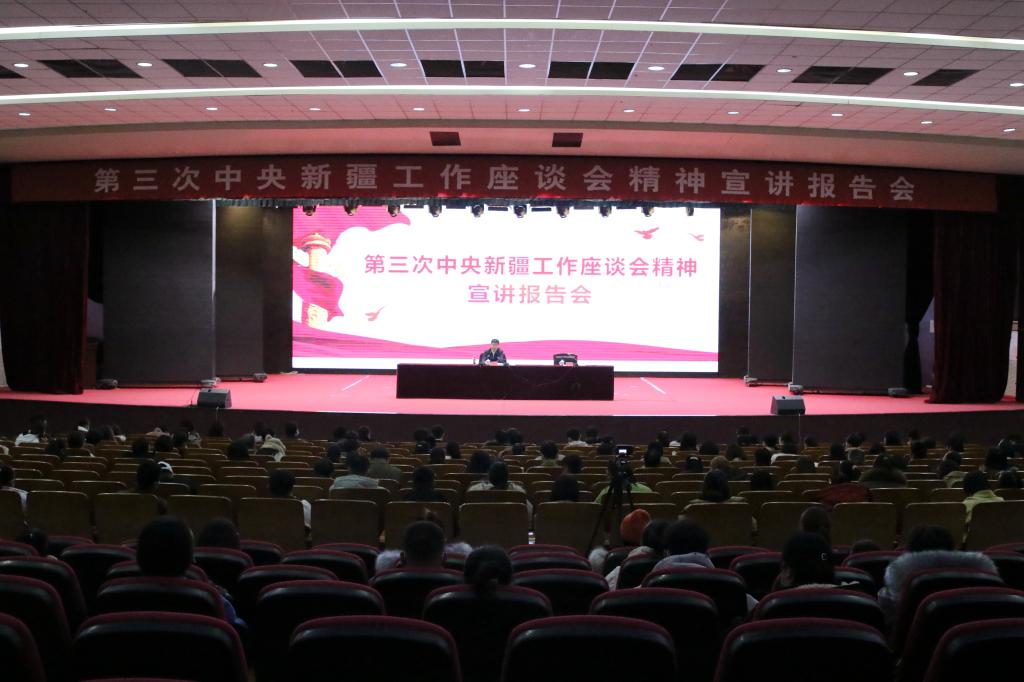 11月18日下午,黨委書記趙光輝為人文院黨員干部和師生宣講第三次中央新疆工作座談會精神。宣講報告會由人文院黨委書記張理主持,在行政樓報告廳舉行。