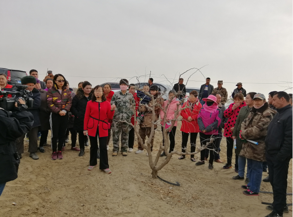 3月3日,服務團赴十四師47團團部、2連、4連,針對不同樹齡、樹形棗樹,開展了提質增效和樹體管理方面的技術培訓,解答了種植戶提出的有關棗園施肥、灌溉、培肥地力等方面的問題,特別為47團新引進種植戶講解示范了幼樹整形修剪技術。