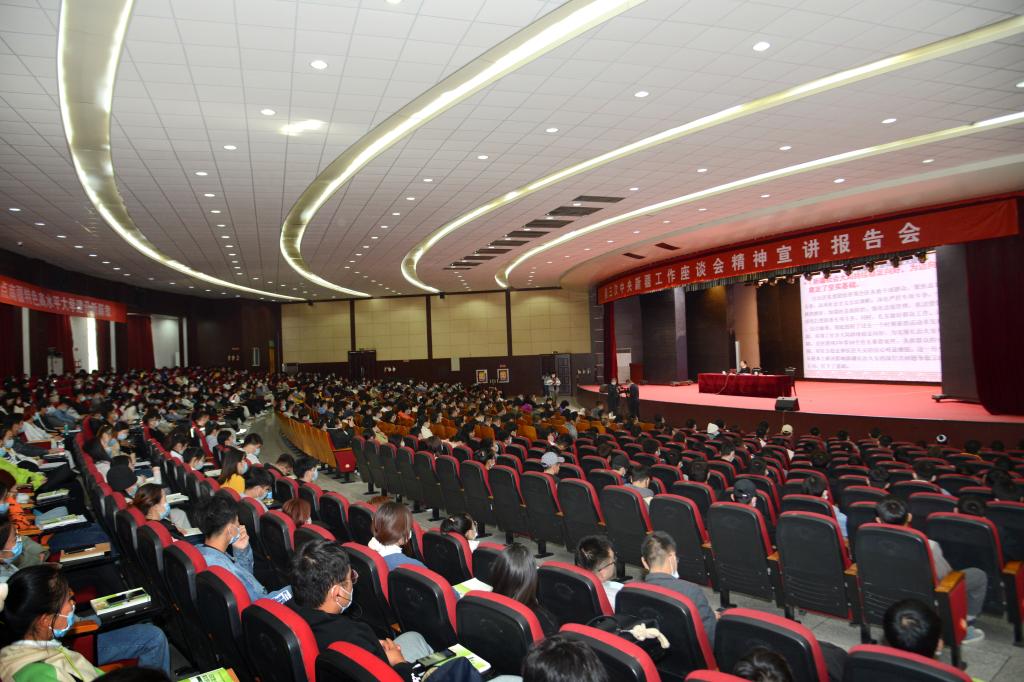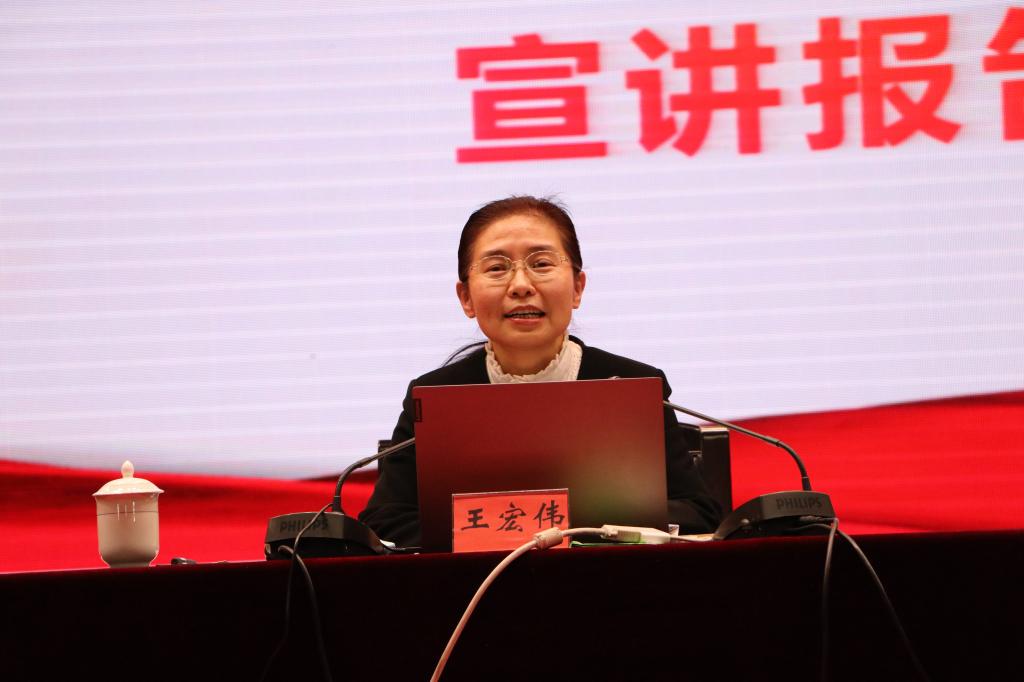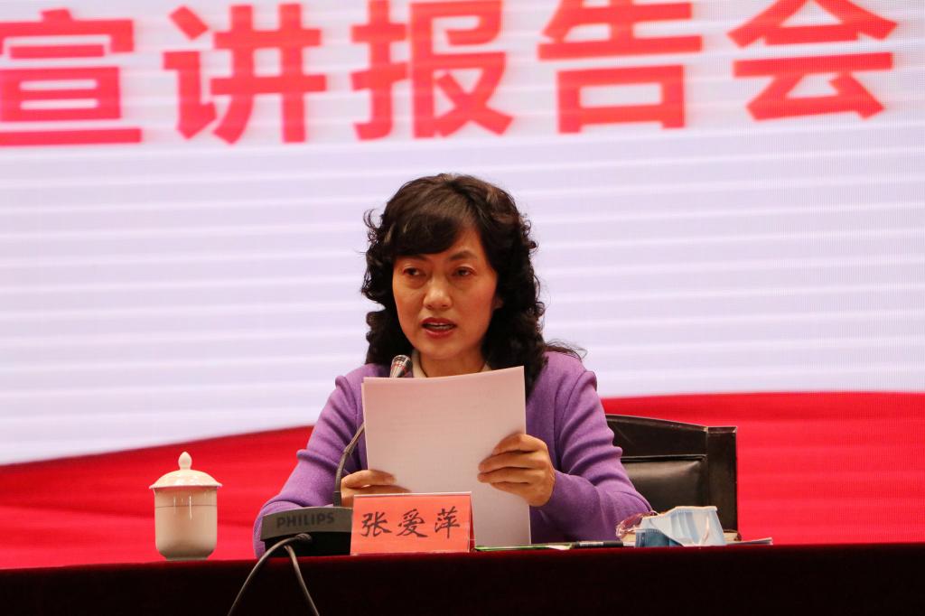 黨委書記趙光輝,黨委副書記、紀委書記單洪山,黨委副書記張愛萍,副校長張利莉,黨委常委、副校長于軍、石長青,黨委常委、組織部部長馬智群,以及副處級以上干部,離退休干部教師、各學院師生代表,思政系全體教師、機關全體干部聽取了宣講報告。報告會由張愛萍主持,在行政樓報告廳舉行。
