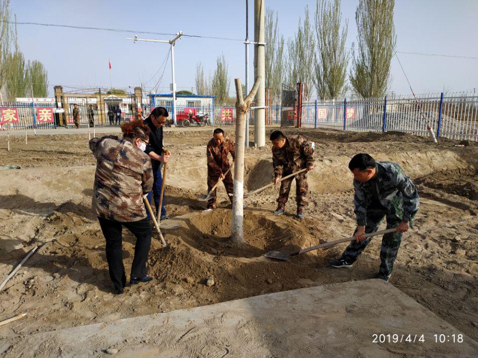 春染大地,生機勃發。4月4日,我校駐兵團第一師十一團一連“訪惠聚”工作隊聯合連隊“兩委”班子,組織連隊群眾開展植樹活動。